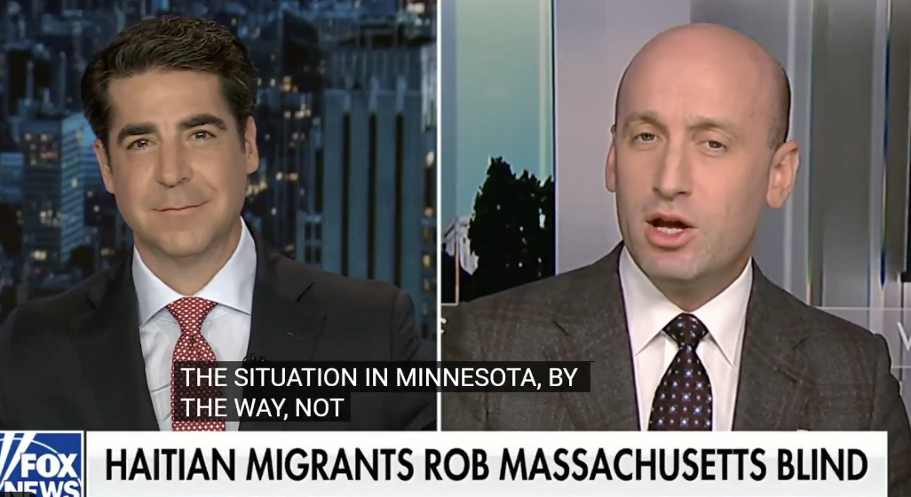 Op vrijdag 19 december verscheen White House deputy chief of staff Stephen Miller op Fox News Channel’s “Jesse Watters Primetime” met de gelijknamige presentator Jesse Watters. Hij sprak over de nieuwe rapporten en beschuldigingen van grootschalige fraude gericht op sociale diensten voor Somalische immigranten in Minnesota.