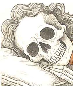 De vrouw naast hem moppert: “Ik ben al twintig jaar dood, Albert.”