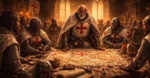 De Tempeliers waren ooit verenigd in een rijke, militaire orde ter bescherming van pelgrims op weg naar Jeruzalem, waar ze zelf een grote basis hadden. Hun innovatieve bank beschermde veel achtergebleven vermogens van de kruisvaarders. Zelf leefden ze onder een gelofte van armoede, geen bezit, geen luxe en strakke discipline. Oorlog tegen de goddelozen was hun heilige plicht. Na de val van Jeruzalem in 1187 aan de ongewoon integere Koerdische sultan Saladin trokken ze zich terug op hun inmiddels verworven kloosters en landgoederen in heel Zuid-Europa. De Franse koning Filip de Schone had echter enorme schulden bij de Tempeliers en liet op vrijdag de 13e oktober 1307 met steun van een corrupte paus duizenden ridders arresteren. Een honderdtal stierf bij arrestatie, foltering of werd (levend) verbrand. De orde werd opgeheven in 1302, veel bezit werd gestolen, geconfisqueerd of overgedragen aan de orde der Johannieters, ook de orde der Maltezers of Hospitaalridders genoemd. Die club bestaat nog steeds. Maar ooit werd ergens gezworen om de zwakkeren en de godvruchtigen te beschermen. Die eed staat nog steeds in de ziel van veel wakkere mensen! Tempeliers van toen. Voel jij ‘em toevallig toch nog?