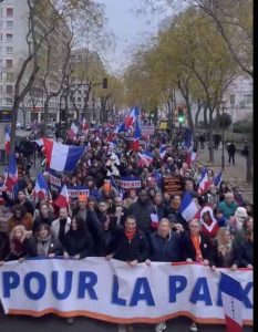 Demonstratie in Parijs op 15 december tegen de NAVO-oorlogshetze