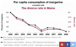 Bedrieglijke statistieken, kijk: minder margarine eten voorkomt scheidingen! Jawel!