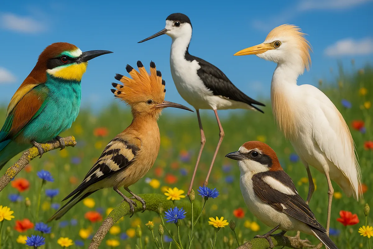 En het blijft niet bij de bijeneter. De hop, met zijn opvallende oranjeroze kuif, keert terug na decennia van afwezigheid. De steltkluut, met zijn absurd lange roze poten, paradeert als een danser door ondiep water. En de koereiger, wit met een oranje borstsieraad in broedseizoen, bouwt steeds vaker hier zijn nest.