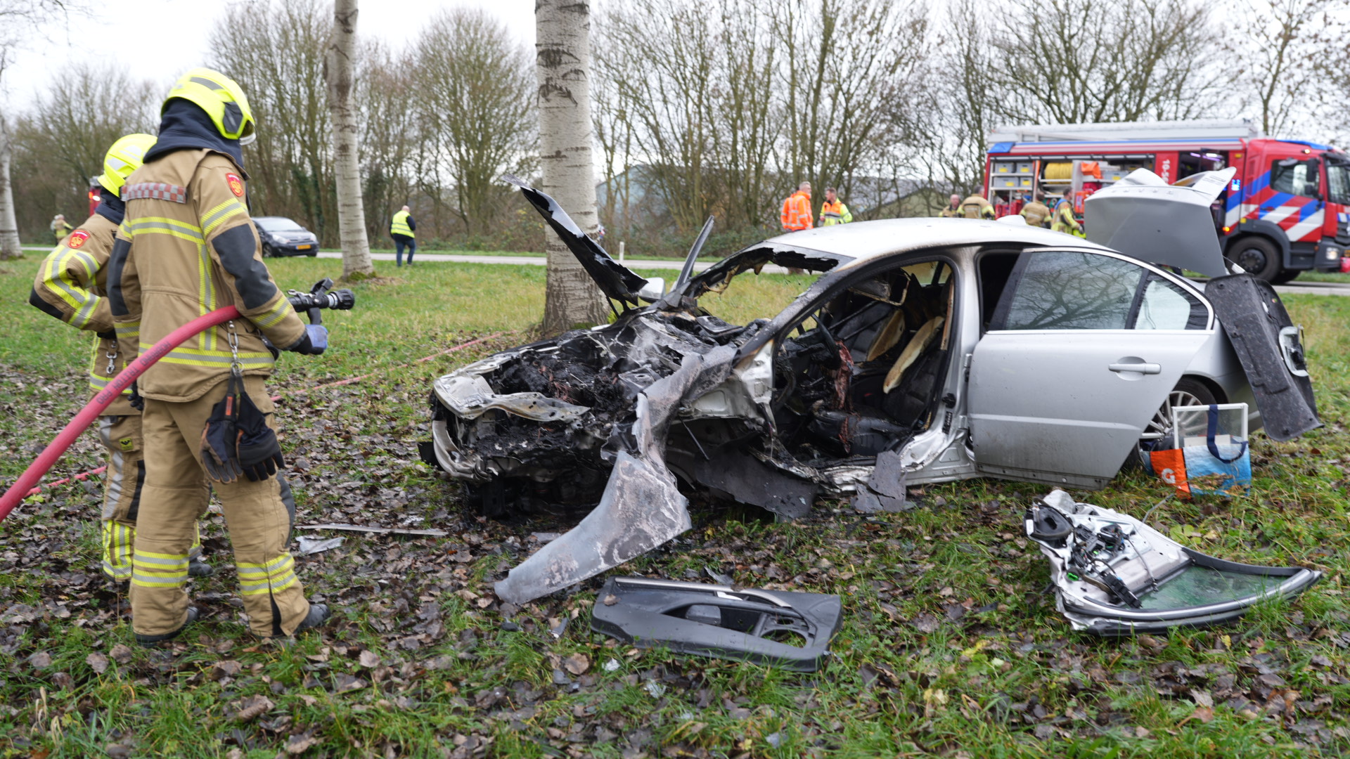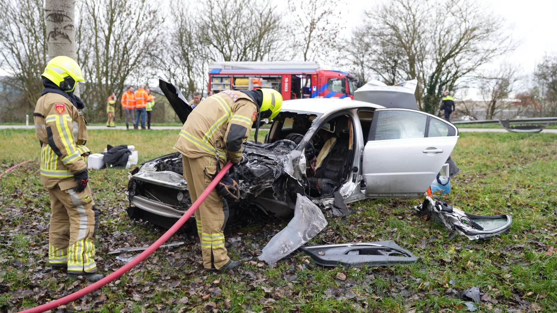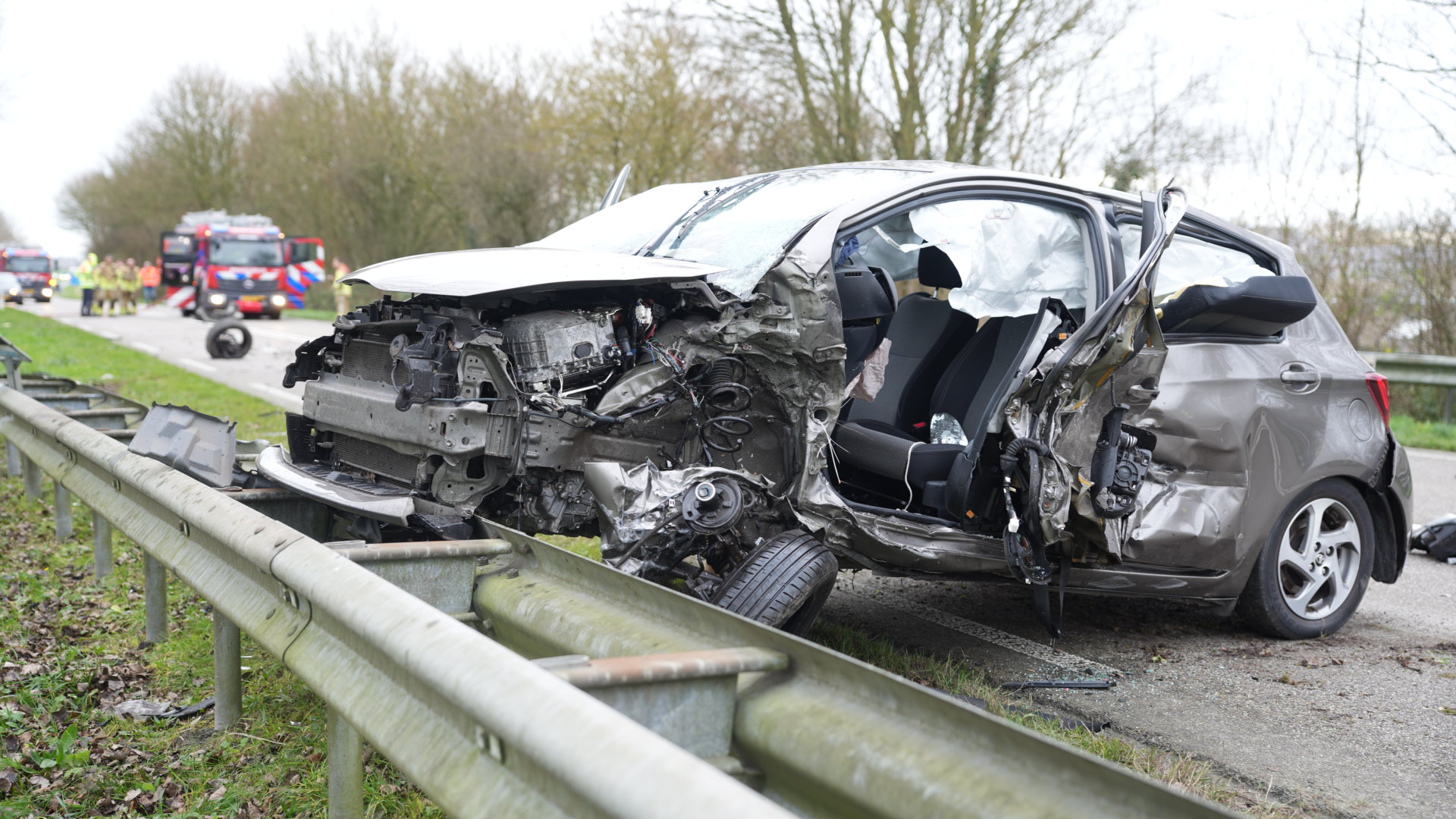 De voertuigen botsten frontaal op elkaar door een nog onbekende oorzaak. Na de botsing vatte een van de auto’s vlam. De brandweer wist het vuur snel te blussen. Beide bestuurders zaten bekneld en zijn door de brandweer uit hun voertuigen bevrijd. Zij zijn met onbekend letsel naar het ziekenhuis vervoerd.