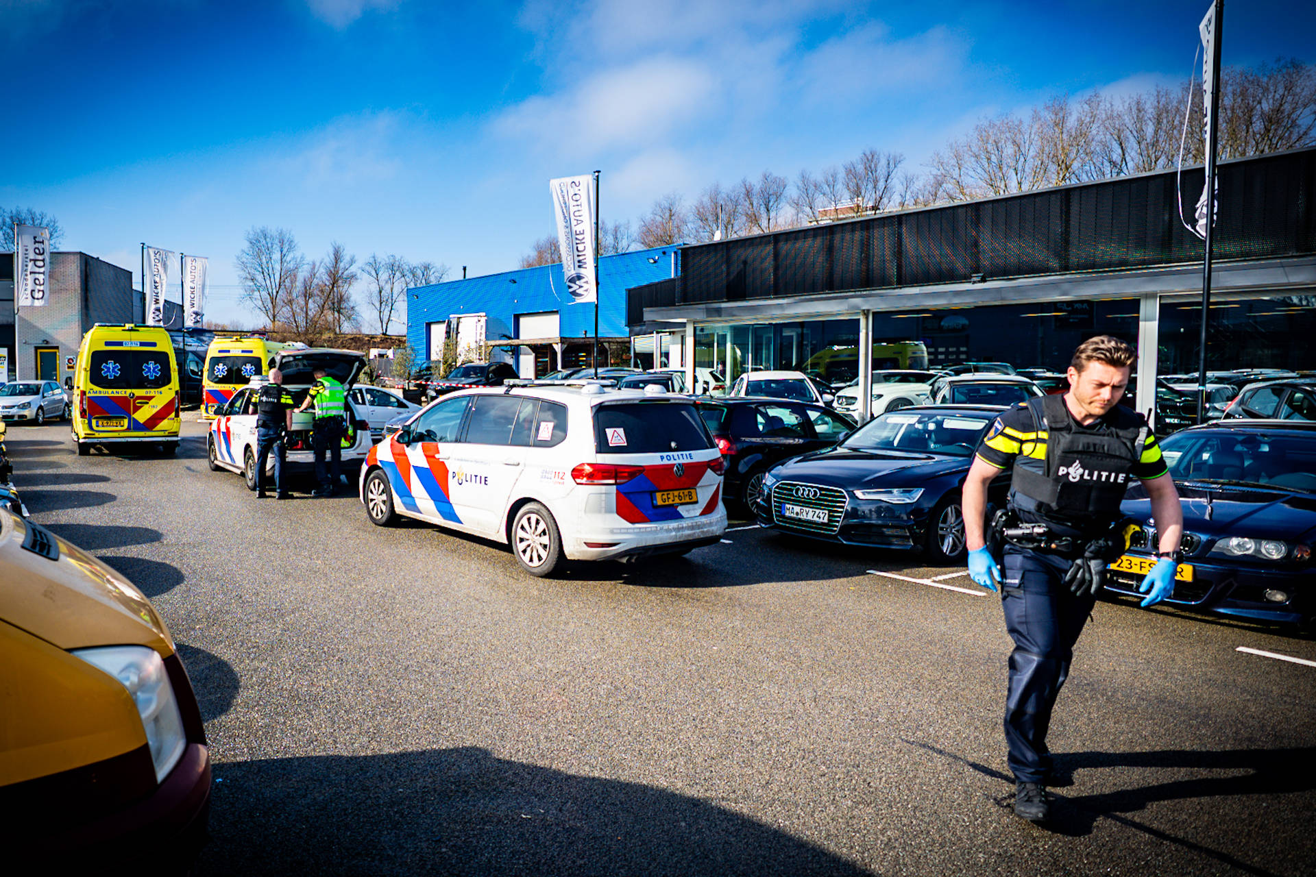Na het incident is de omgeving afgezet en aangemerkt als plaats delict. De politie is een onderzoek gestart naar de toedracht. In een ruit van autobedrijf Wicke zijn twee kogelinslagen zichtbaar. Hoeveel schoten er in totaal zijn gelost, is nog niet bekend.