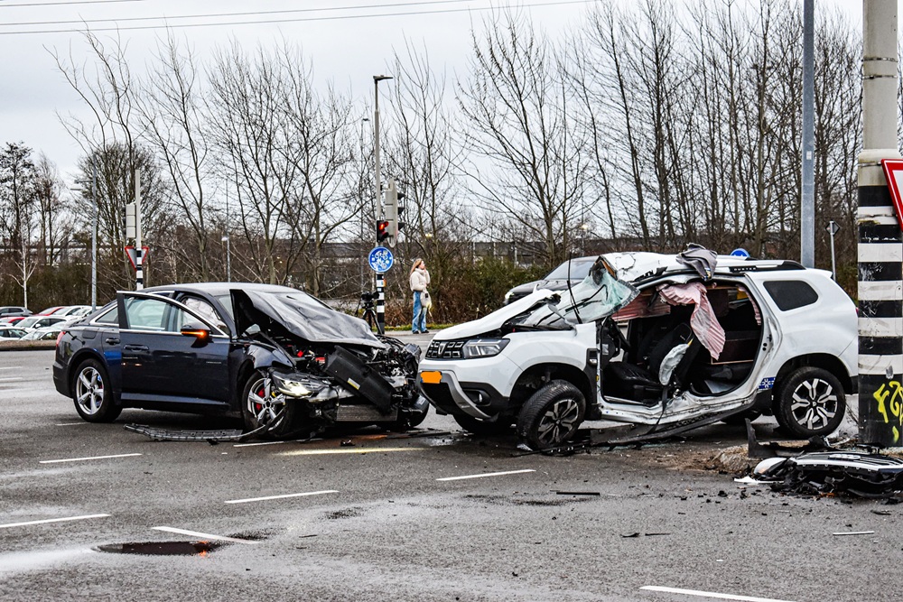 Een auto komende vanaf de Heringweg botste op een met verkeerslichten beveiligde kruising naast de Euroborg met een andere auto. Bij het ongeval raakten meerdere personen gewond en was sprake van beknelling.