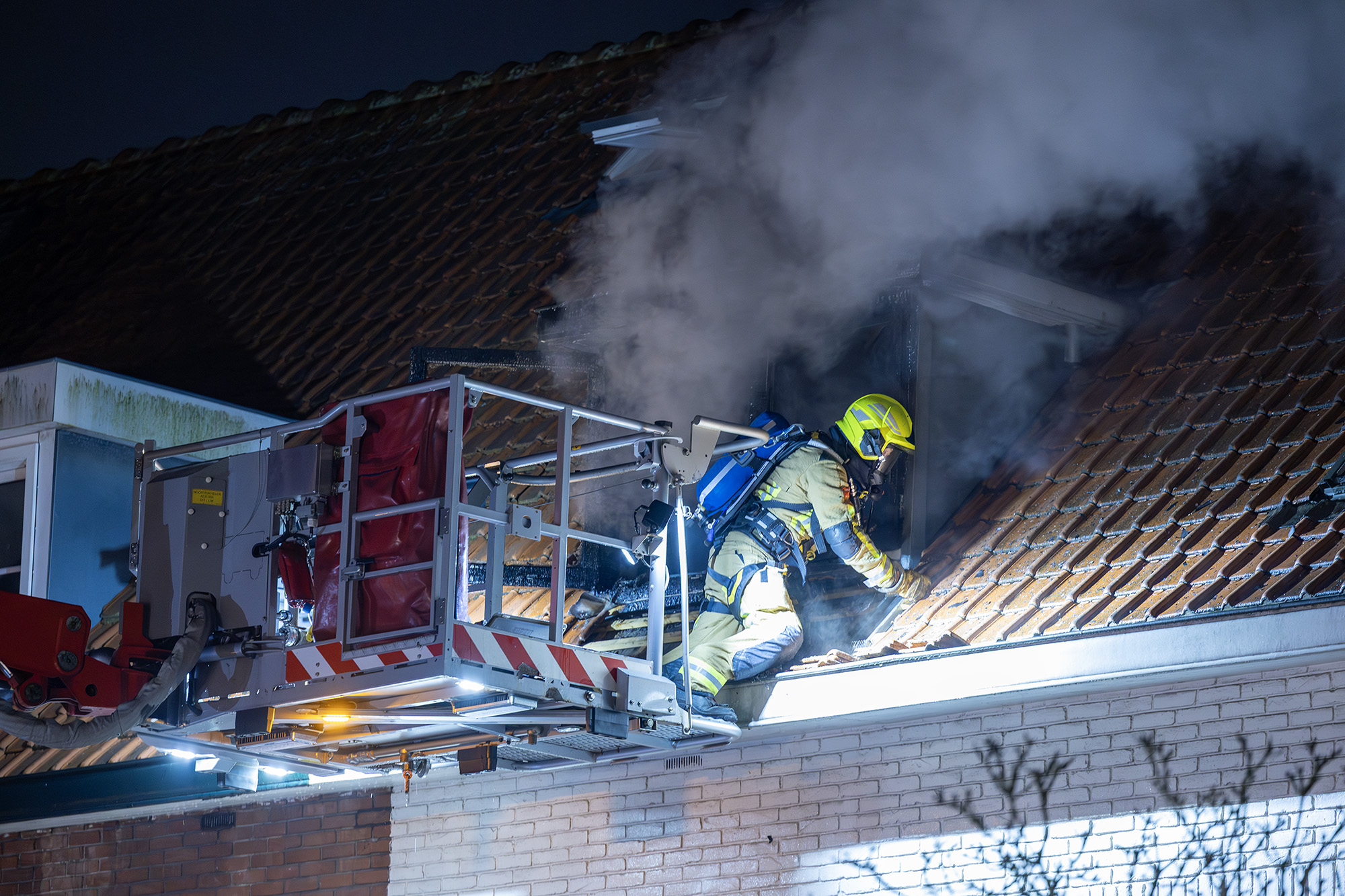 Bij aankomst sloegen de vlammen al uit het dak en was er sprake van flinke rook, die in de wijde omgeving te zien was. De brandweer heeft opgeschaald om extra materieel en personeel in te zetten en begon direct met blussen, onder andere van buitenaf om het vuur onder controle te krijgen.