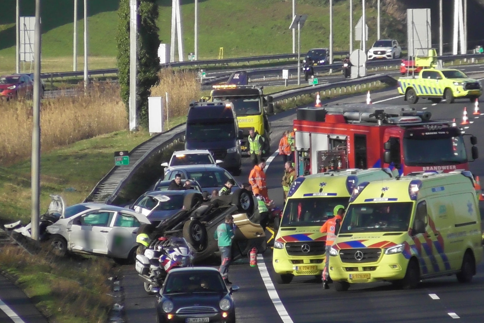 In een van de auto’s bevond zich ook een hond, die ongedeerd bleef. Voor het incident werd een traumahelikopter opgeroepen, maar inzet bleek uiteindelijk niet nodig.