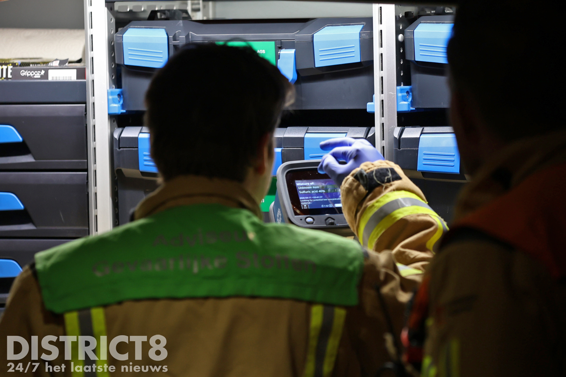 Omdat onduidelijk was om wat voor stof het ging, werd de brandweer ter plaatse gevraagd. Onder andere de AGS (Adviseur Gevaarlijke Stoffen) kwam ter plaatse.