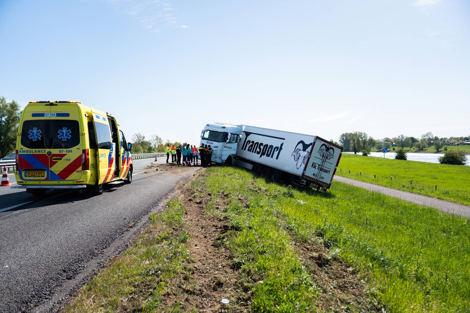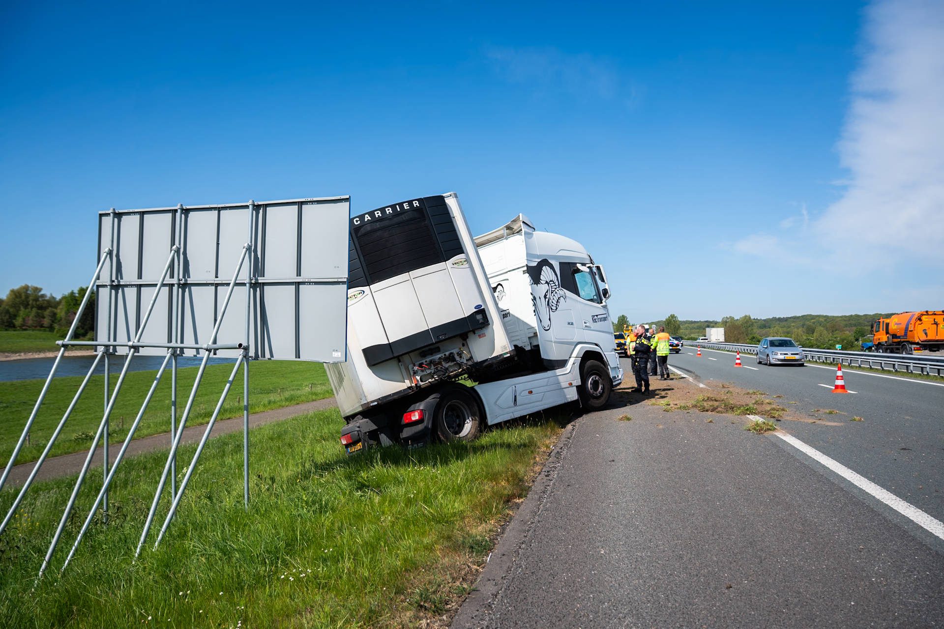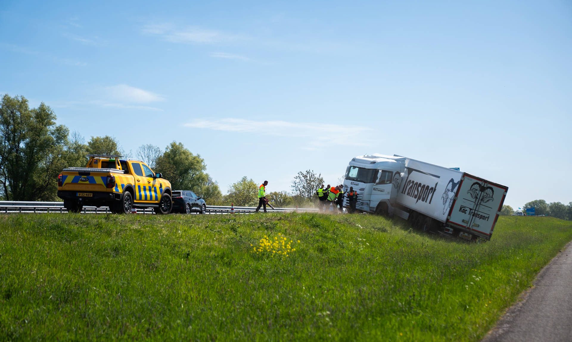 De hulpdiensten werden rond 10:30 uur gealarmeerd voor een ongeval. Bij aankomst van de hulpdiensten bleek dat de vrachtwagen in de berm stond en scheef was komen te staan. Hoe het voertuig precies van de weg is geraakt, is nog niet bekend en wordt onderzocht.