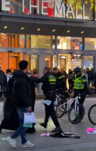 Het geweldsincident werd kort na de aanhouding vastgelegd op video’s die op sociale media circuleren en breed gedeeld zijn. De beelden tonen hoe een agent een vrouw vastpakt en richting een politiewagen leidt. Kort daarna is te zien dat een tweede vrouw, die de situatie filmt met een telefoon, een trap uitdeelt krijgt van dezelfde agent. Vervolgens lijkt de agent met zijn wapenstok een van de vrouwen te slaan. Op de fragmenten is geen duidelijke aanleiding te zien voor het geweld.