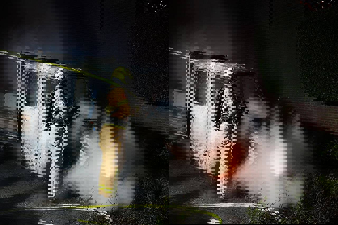 De brandweer werd rond 23.00 uur opgeroepen voor de autobrand. Bij aankomst stond het voertuig al volledig in brand. Ondanks een snelle inzet kon niet worden voorkomen dat het voertuig volledig uitbrandde.