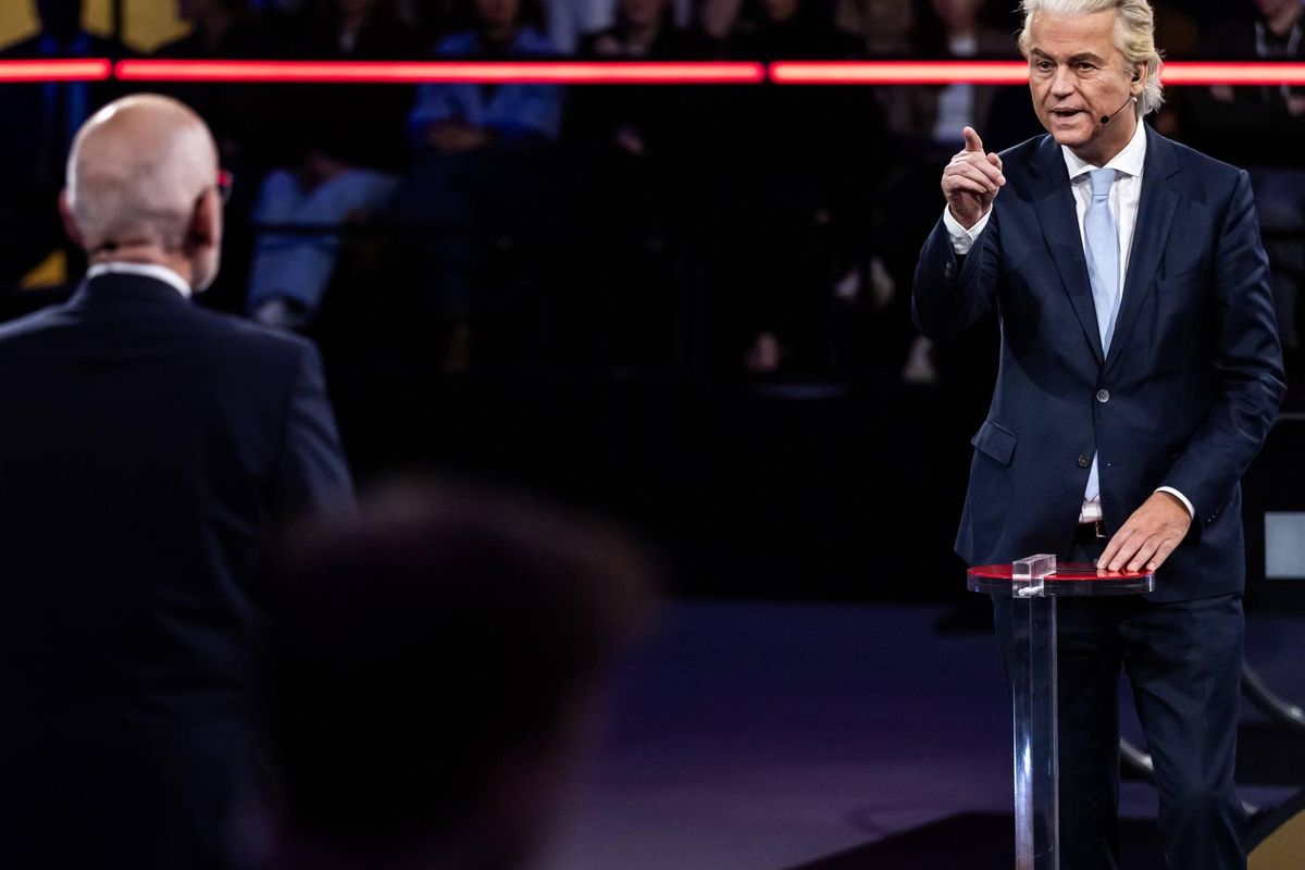 DEN HAAG (ANP) – PVV-leider Geert Wilders neemt “geen enkele” sanctie tegen de twee PVV-Kamerleden die bewerkte AI-afbeeldingen van Frans Timmermans verspreidden. “Al zou ik ze van de lijst willen halen, dan kan ik dat niet, maar ik wil dat ook niet,” zei hij na afloop van het NOS-verkiezingsdebat tegen het ANP.